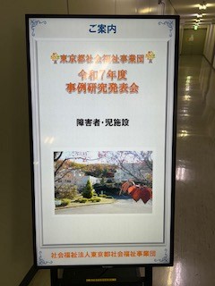 当園からは、『A様の生活しやすい環境を整えるために』をテーマに発表を行いました。これは、行動特性により日々の生活に支障が生じてしまっている利用者様に対し、心理士の専門的なアドバイスのもと、視覚的なアプローチの活用等、棟内で意見交換を重ねながら支援の方向性を探った内容をまとめたものです。