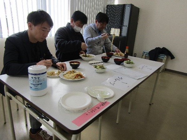 審査員4名と研修担当で試食をしたのですが、どちらのチームのご飯も美味しくて、味見程度の予定だったのですが…いっぱい食べてしまいました。