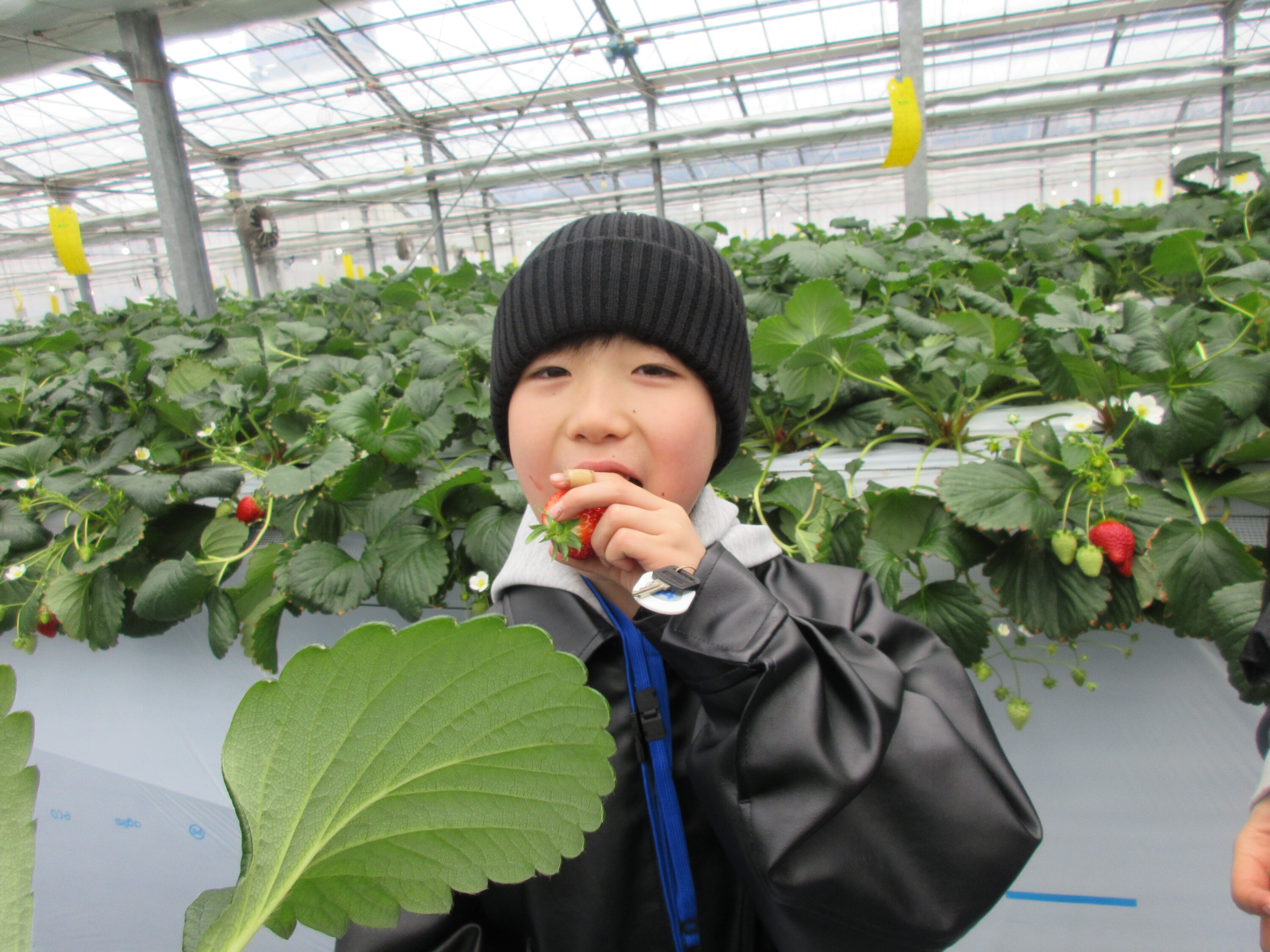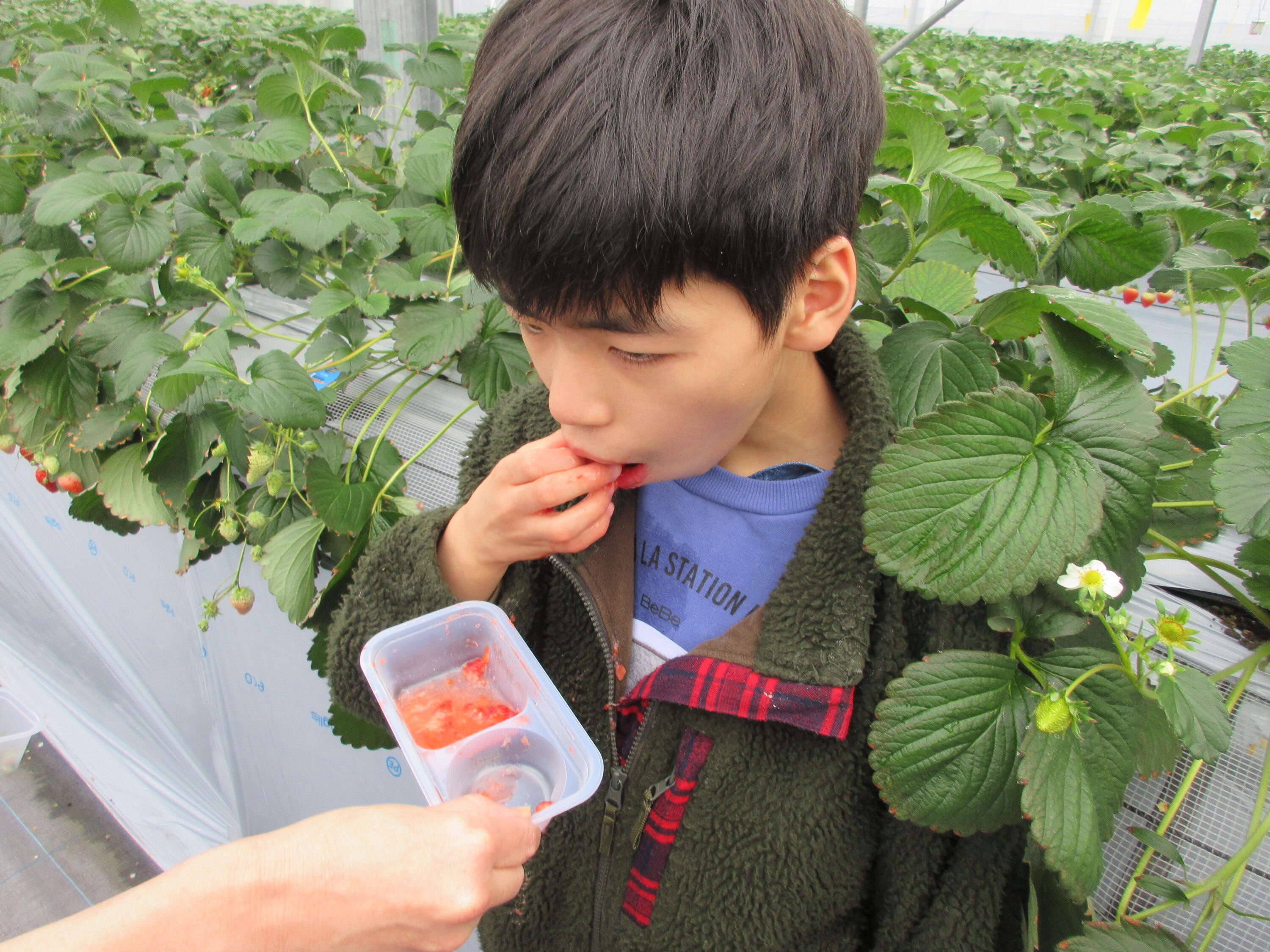 いちごをたくさん食べて笑顔がみられました😊おいしかったね!