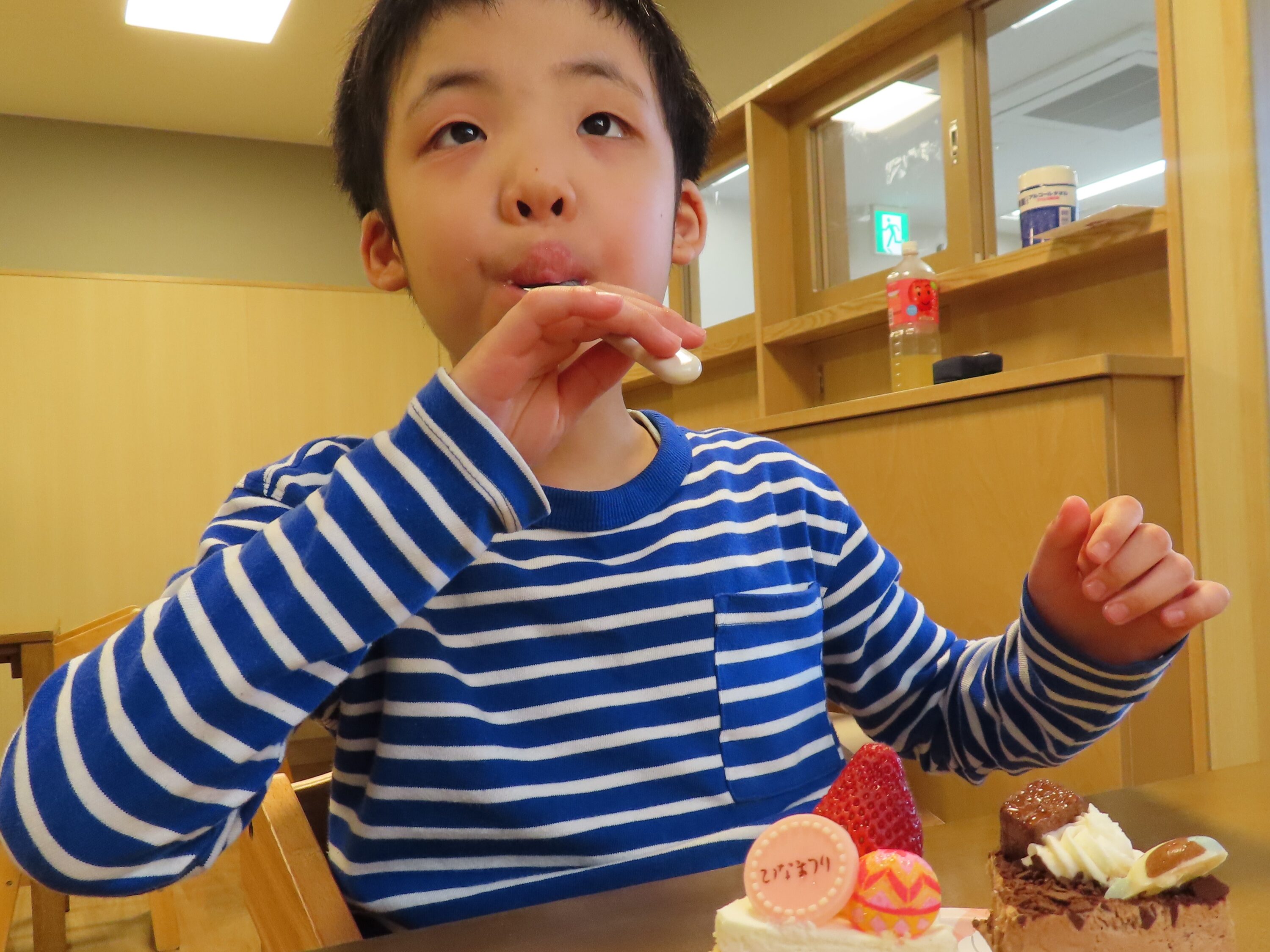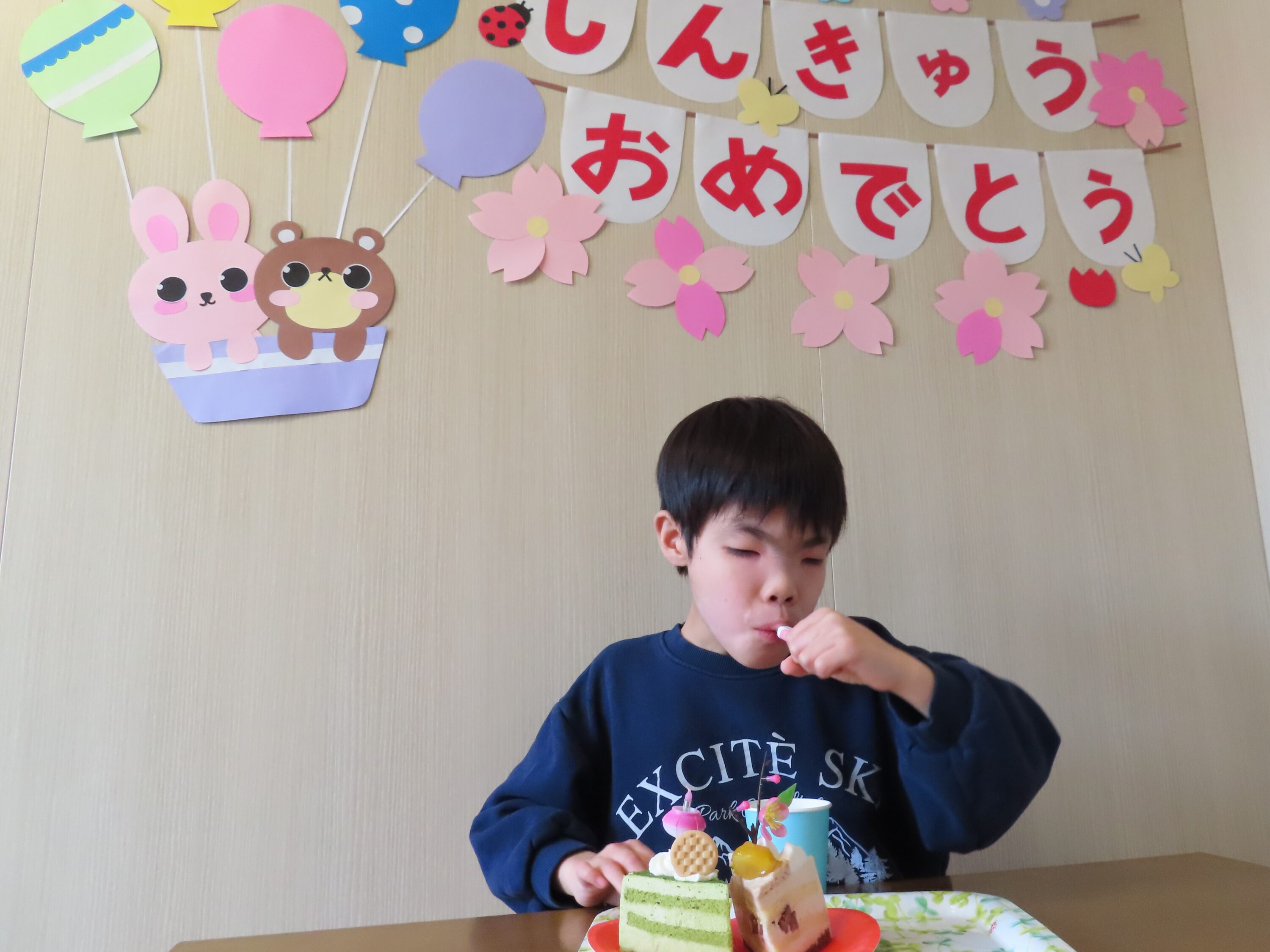 スタッフブログ2026年3月12日 進級を祝う会🌸ひまわりユニット🌻スタッフブログNEW2026年03月12日進級を祝う会を行いました。可愛いケーキを食べたり写真をたくさん撮ったり…ケーキはひな祭り限定のケーキでした。美味しそうにパクっと!どこから食べようかな…と迷っている様子も😚そして職員が作った装飾の前で写真を撮りました📸今年もたくさん頑張りました✨進級おめでとう🎊